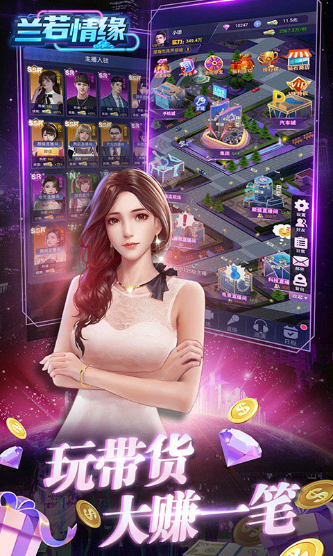 真实模拟经营各个超人气美女的直播间,从而白手起家成为一代富豪, 模拟人生投资的每一步收益,不断买楼买地,创业最终成为商业大亨。 游戏中,玩家不断凭借各种人格魅力以及选择认识各个美女为她们创立直播间,进行直播大秀,最终一步一步进行卡牌养成,成为一代商业巨鳄。游戏福利满满,等你来领取!!SSR美女秘书、豪车派对首富的生活从现在开始。