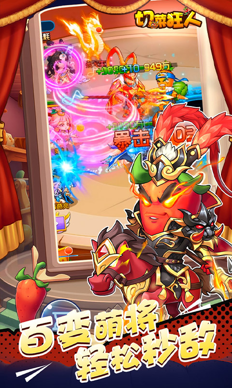 《切菜狂人》是一款超上头的Q版休闲挂机游戏。水果蔬菜混搭,形象搞怪萌态百变,新英雄新玩法,悟空、哪吒、八戒、赵云、关羽、吕布应有尽有,多样英雄任意搭配阵容,轻松闯关,还有大战僵尸,爬塔等趣味玩法,欢乐集结,畅玩不腻!创角648充值卡,悟空师徒与你一同过关斩将,绝世厨神竞技,食神之塔,艰险重重,你将勇往直行,击败强大敌人!