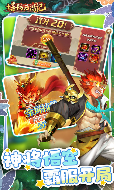 《塔防西游记(0.05折签到送代金)》游戏的炮塔设计Q萌可爱,动漫风地图设计完美呈现西游取经剧情,轻松益智,三百多张设计精美的剧情地图让人沉浸体验。 在这款策略塔防游戏中,你将作为西天取经的主人公,组建自己的队伍,招募那些传说中的天兵仙将前往西方极乐世界。游戏越到后面,关卡也会越来越有挑战性,我们可以通过秘境寻宝,挑战伏魔塔等游戏特色副本获取装备和升级材料,来打造最强的取经之旅!